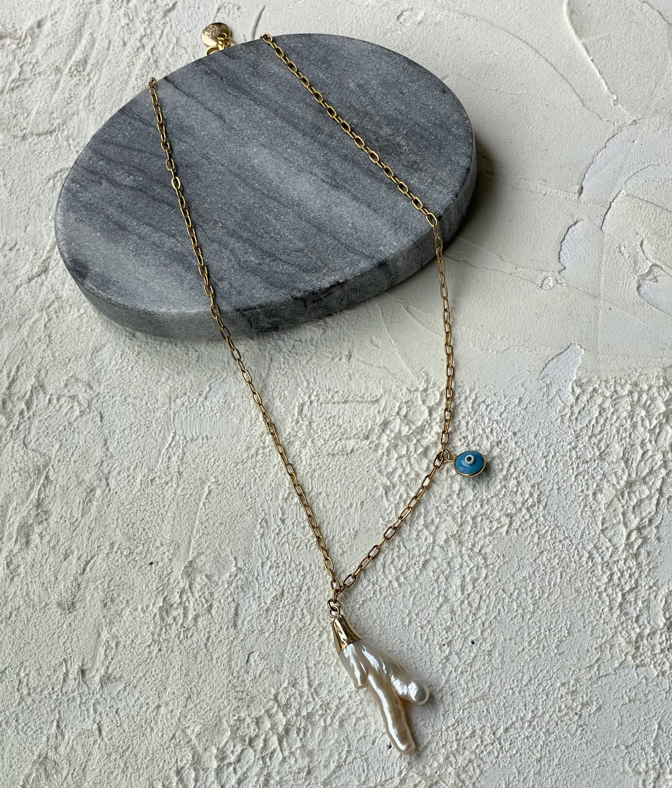 • Αλυσίδα από ατσάλι με στοιχείο από μαργαριτάρι και ασημί 925