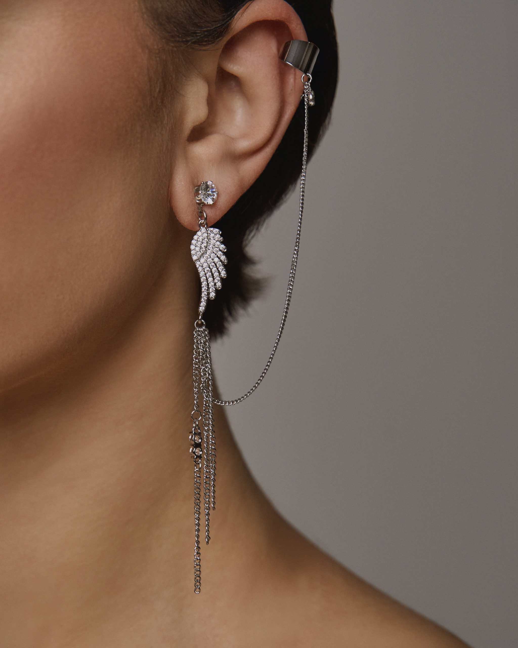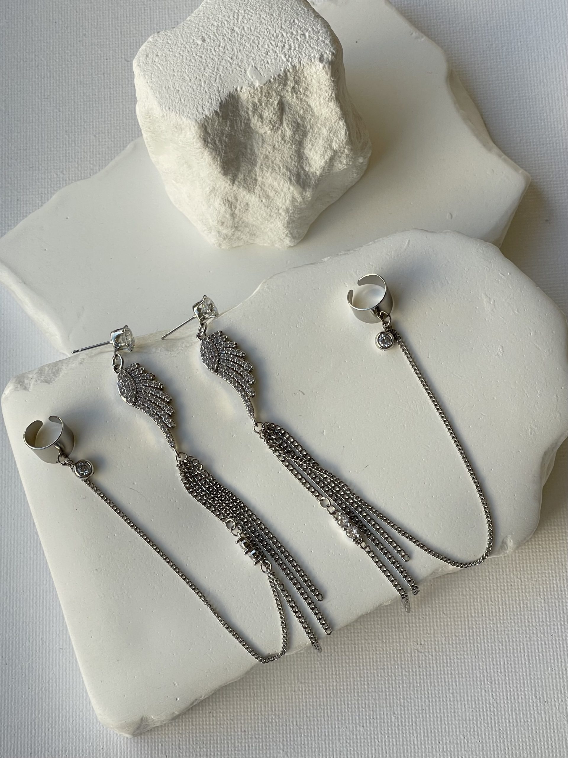 - Χειροποίητα σκουλαρίκια με βάση και αλυσίδες από ατσάλι και μαργαριτάρια