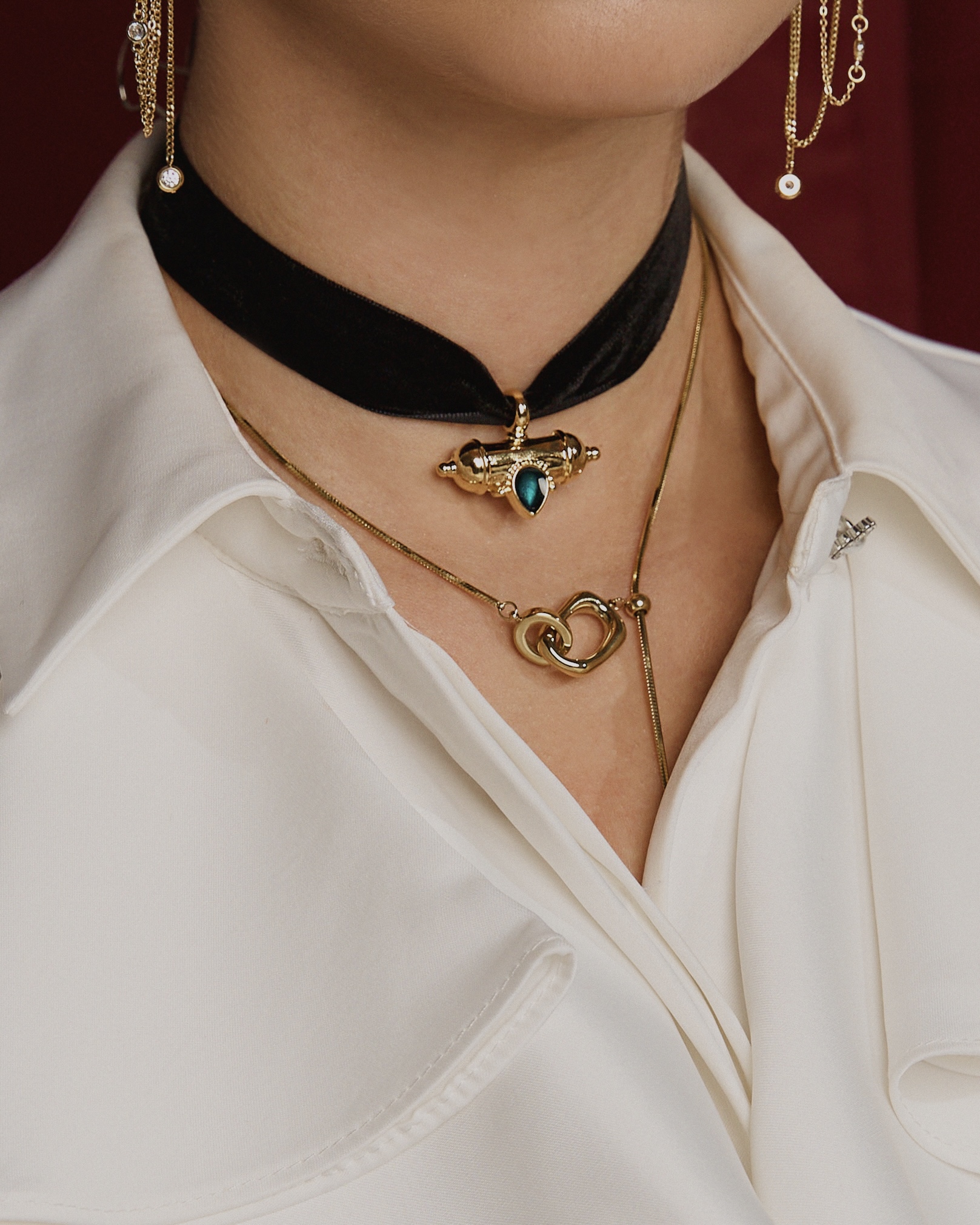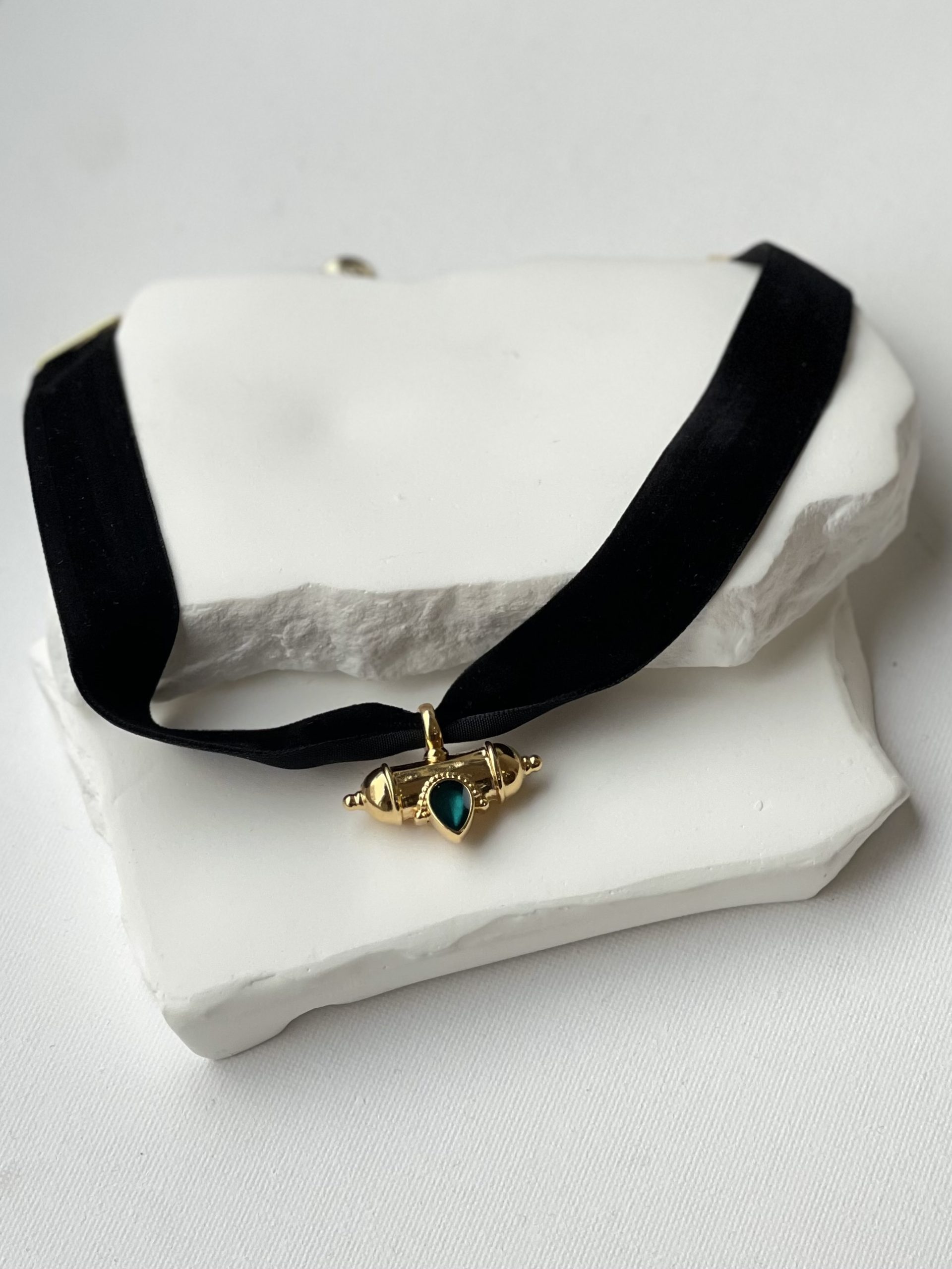- Χειροποίητο κολιέ, choker με βελούδινο κορδόνι και στοιχείο από ορείχαλκο