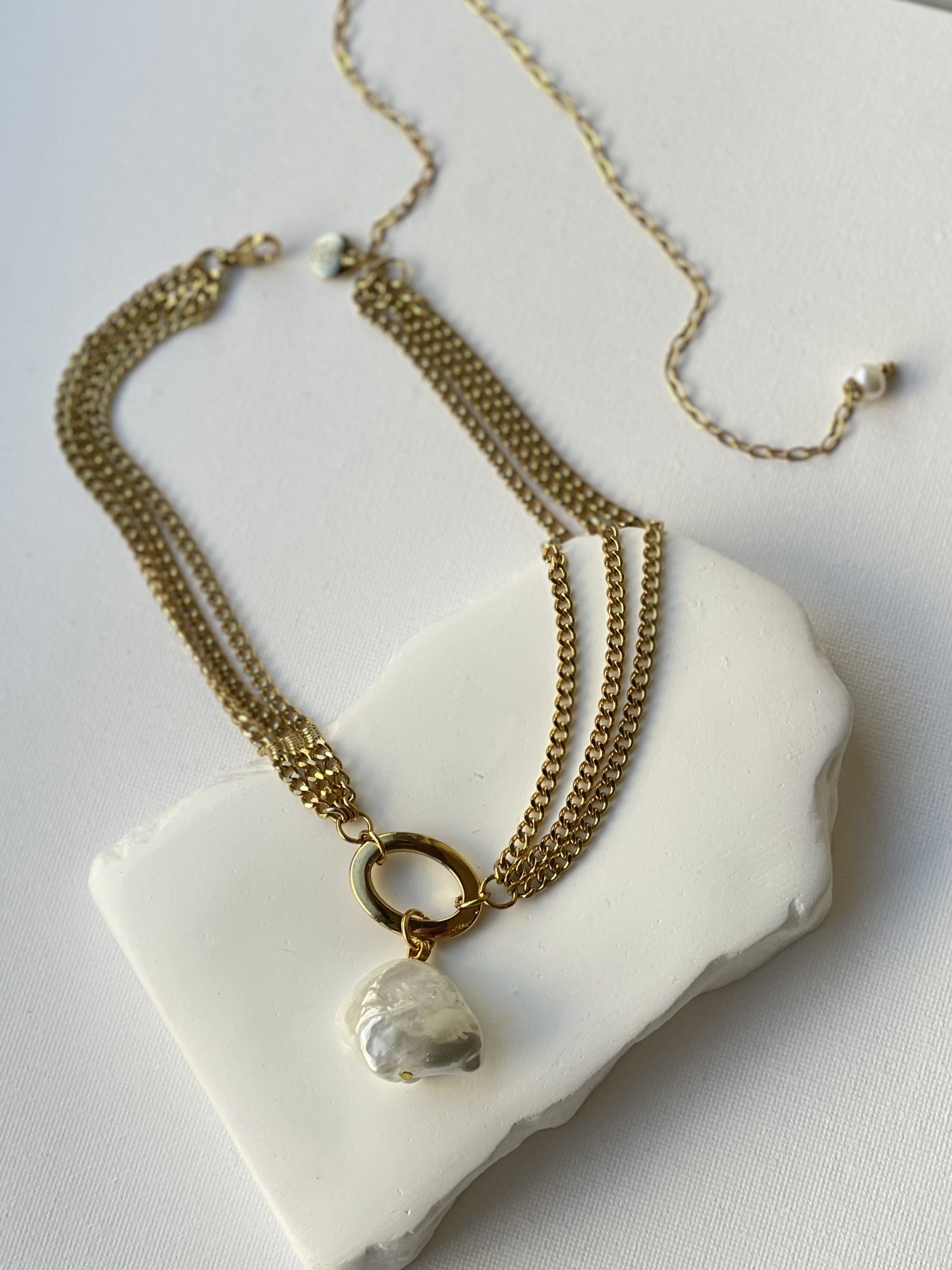 - Χειροποίητο κολιέ με μαργαριτάρι και αλυσίδες από ατσαλι