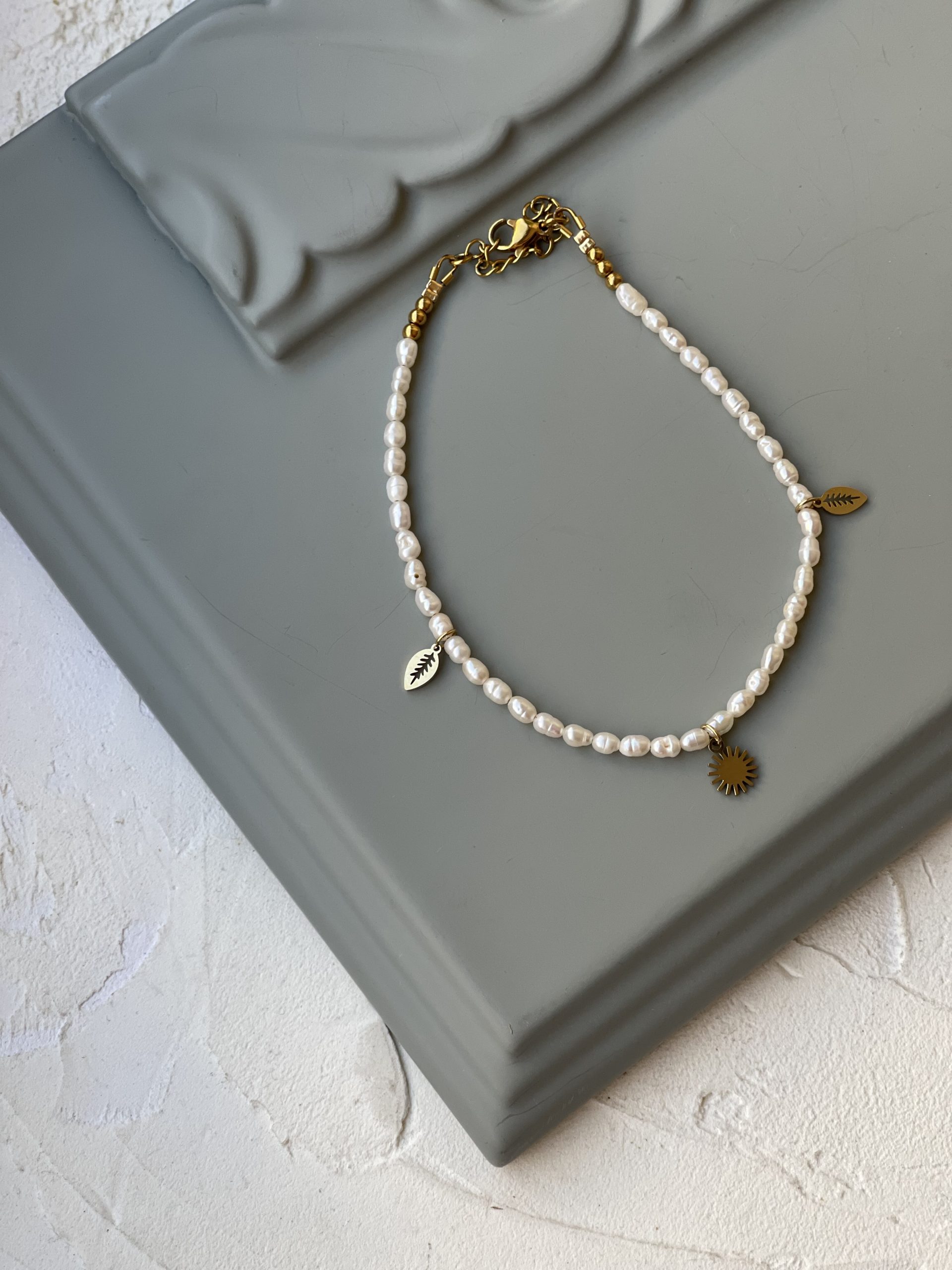 • Βραχιόλι ποδιού με μαργαριτάρια και στοιχεία από ατσάλι