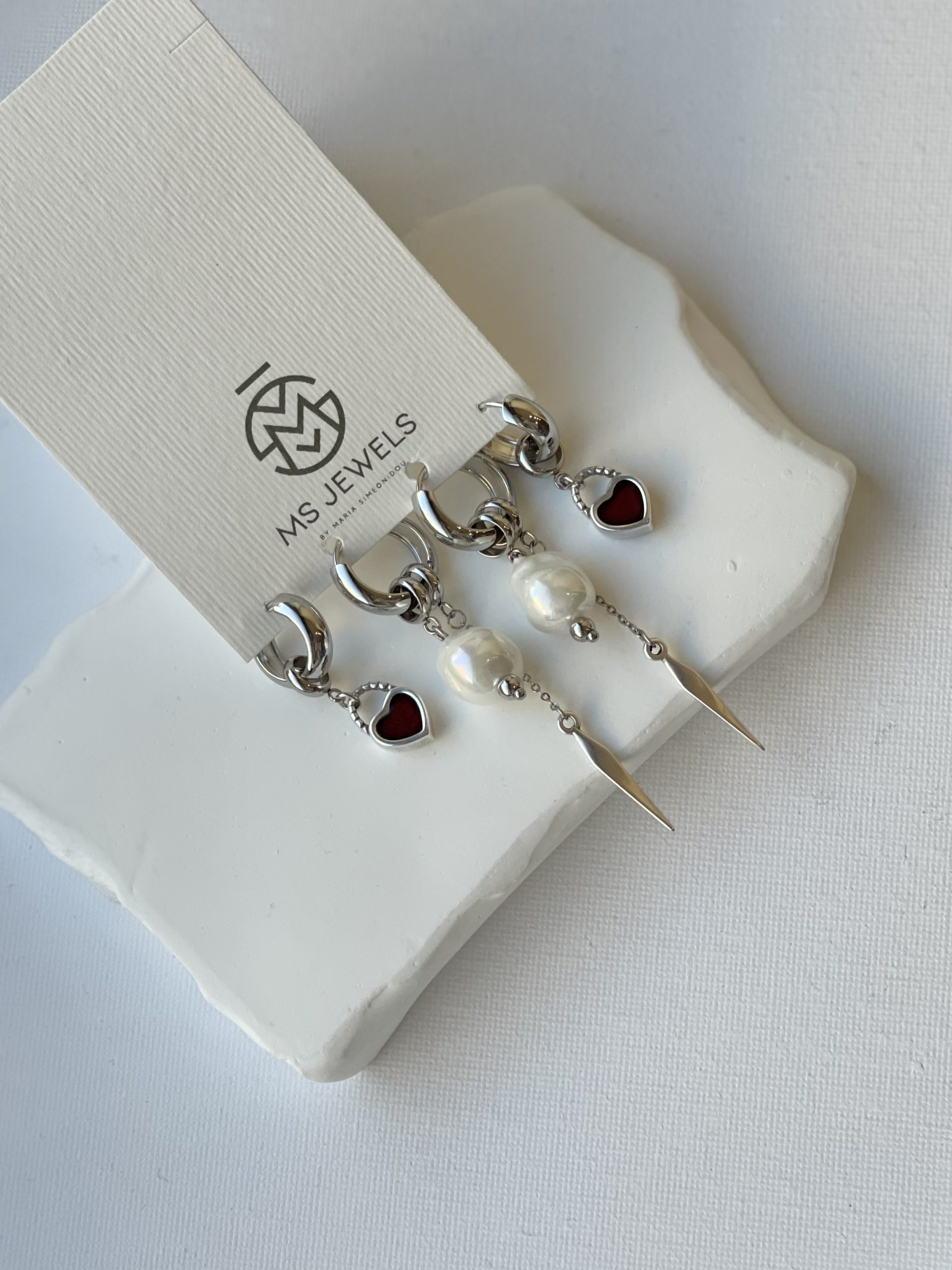 • Σετ 4αδα σκουλαρικιών από ατσάλι και στοιχεία από ορειχαλκο