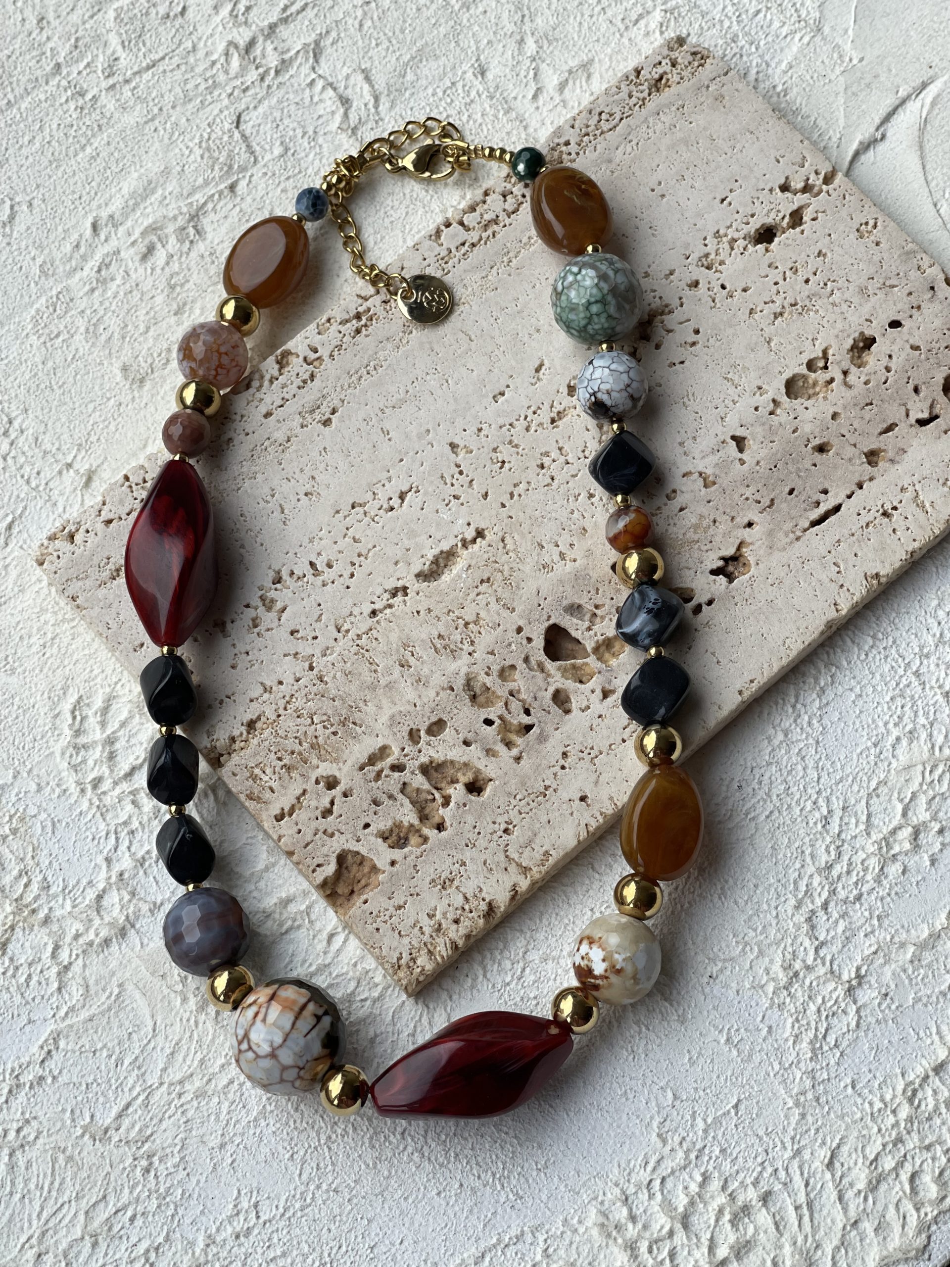 • Κολιέ με πέτρες και στοιχεία από  ατσάλι