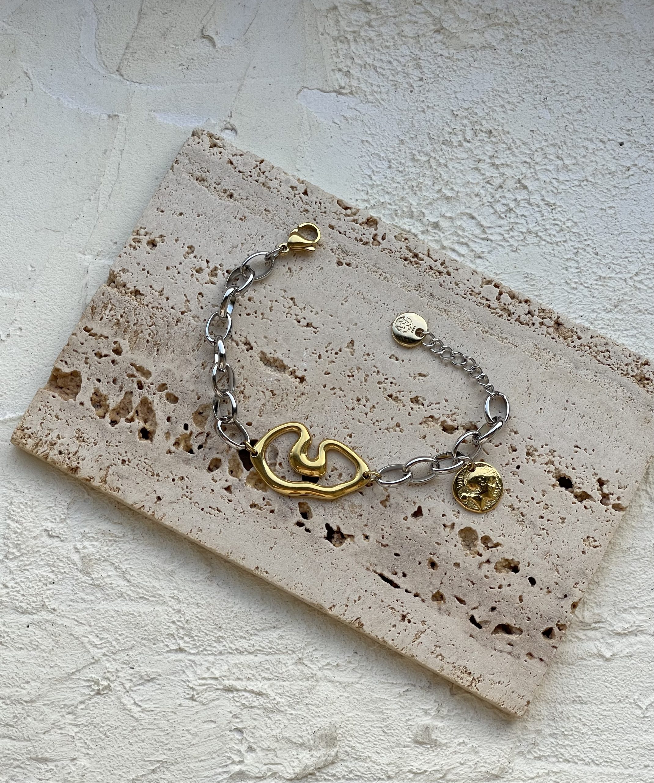 • Βραχιόλι από ατσάλι με στοιχεία από ατσάλι και ορείχαλκο